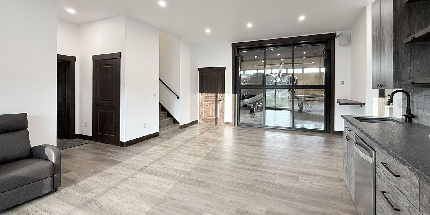 This furnished hangar home has 2,250 sg ft. of living space and offers the rare combination of aircraft space and elevated living. The hangar measures an impressive 64’ wide x 55’ deep with 15’9” of door clearance—ample room for your aircraft and gear, with easy access to the skies.