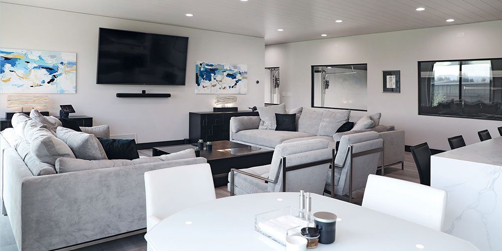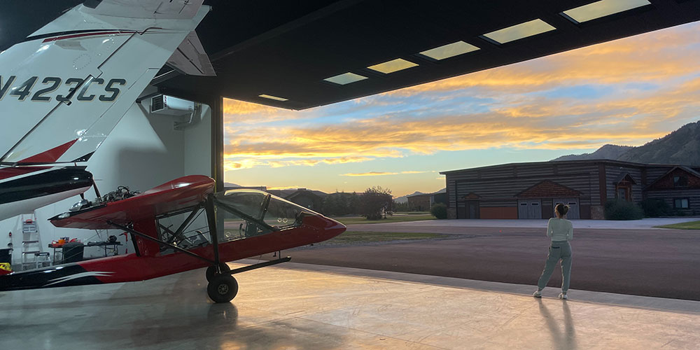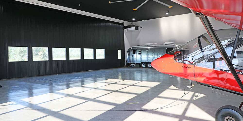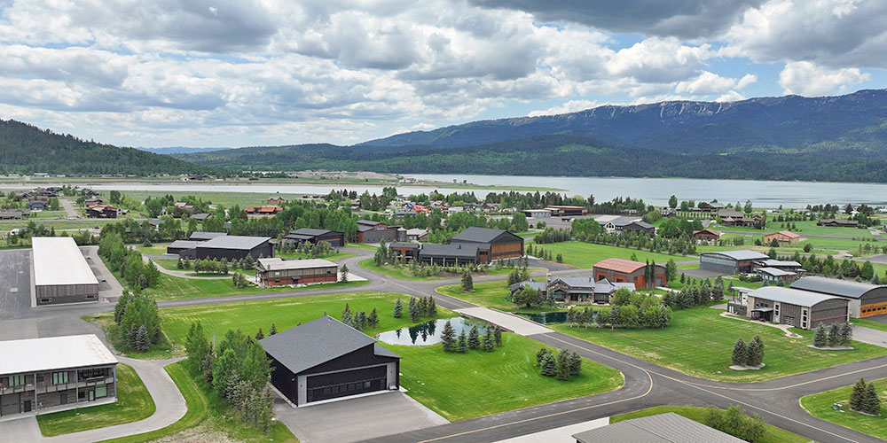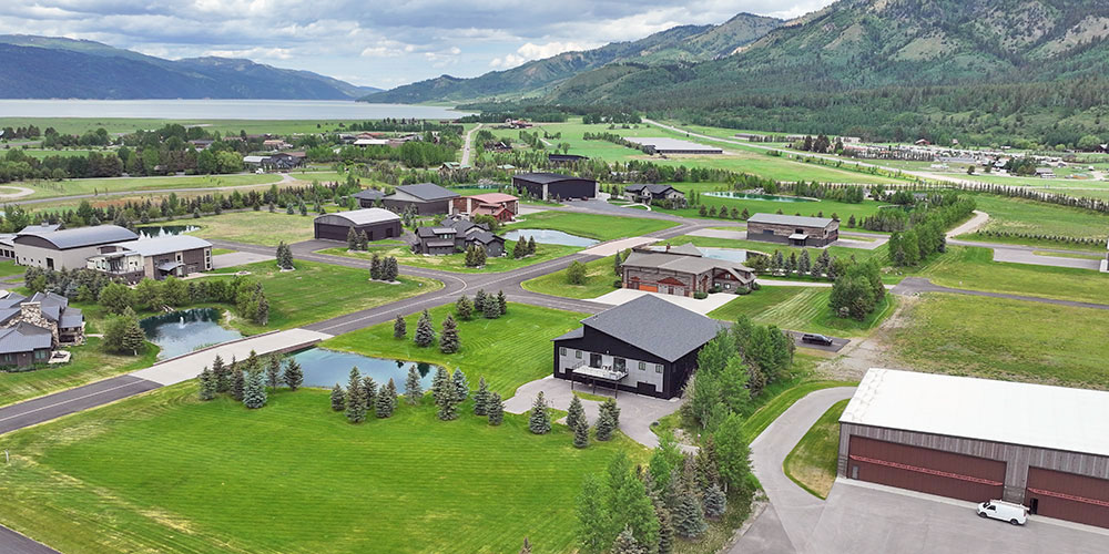 Mountain Modern 868 — A rare blend of function and luxury. This expansive 76′ x 86′ hangar with a 60-foot wide door includes 2,232 sq.ft. living space featuring 4 bedrooms, 5 bathrooms, and a private office—all finished with top-of-the-line appliances and high-end materials. Enjoy a spacious deck with breathtaking views, perfect for entertaining. Ideally located in the highly sought-after Refuge at Alpine Airpark, surrounded by mature trees and a tranquil pond. This 2± acre lot provides ample room to build a custom home tailored to your vision.
