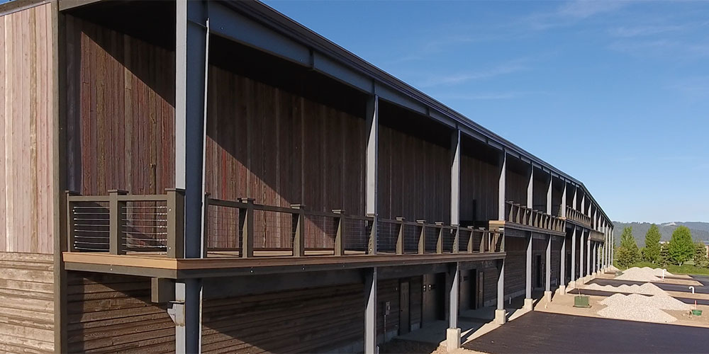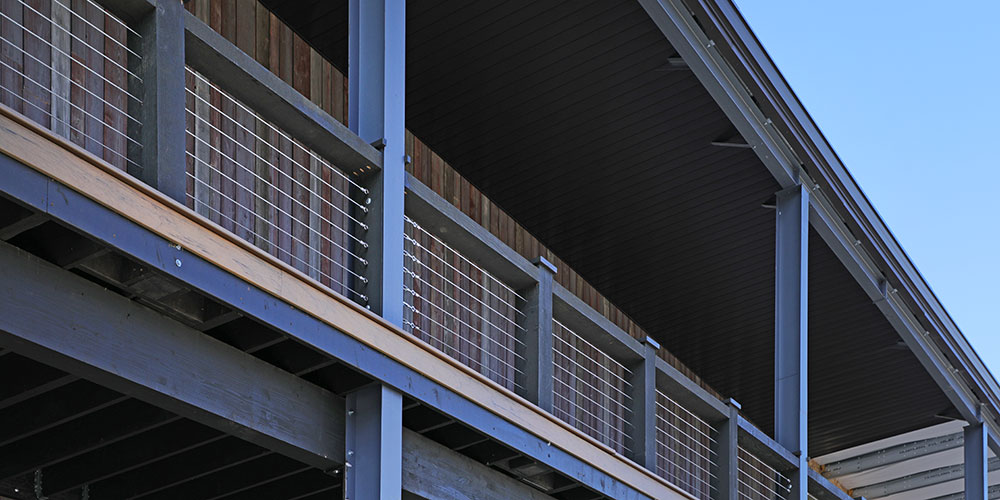 COVERED DECK: a 70ftx 10ft deep covered deck with concrete floor will be installed along the back “living quarters” side of the hangar building.