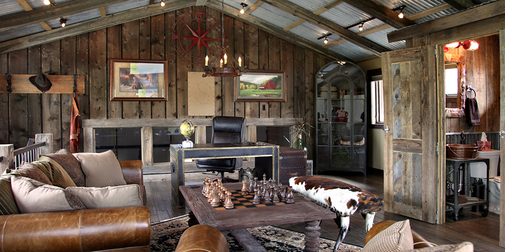 • Chinked Log Siding with Barn Wood Accents